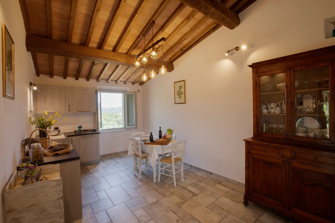 La cucina è ben attrezzata per la preparazione di pasti, e dispone di un piano cottura a gas metano, un forno a microonde, frigorifero, lavastoviglie, utensili da cucina, oltre a piatti, bicchieri, posate, bollitore per tè e caffè, moka per un perfetto caffè all’italiana, tostapane, tovagliette monoposto.