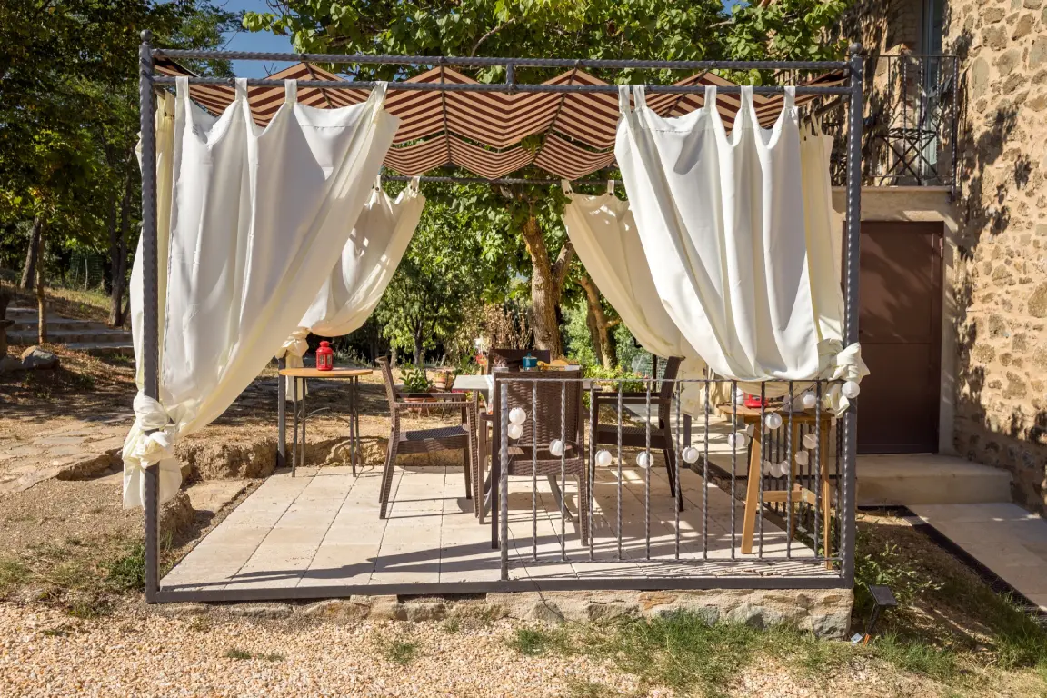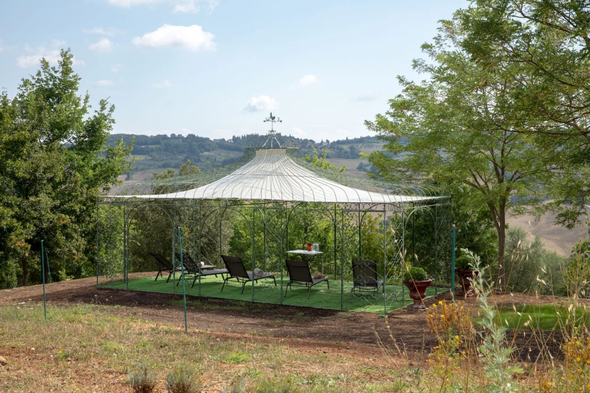 (gazebo solarium con lettini, tavolo, poltroncine, amaca)